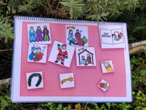 Como en ocasiones anteriores, lo que se les plantea según el nivel es la historia bíblica adaptada con pictogramas o la secuencia de pictogramas que les sirva para anticipar las fiestas navideñas.