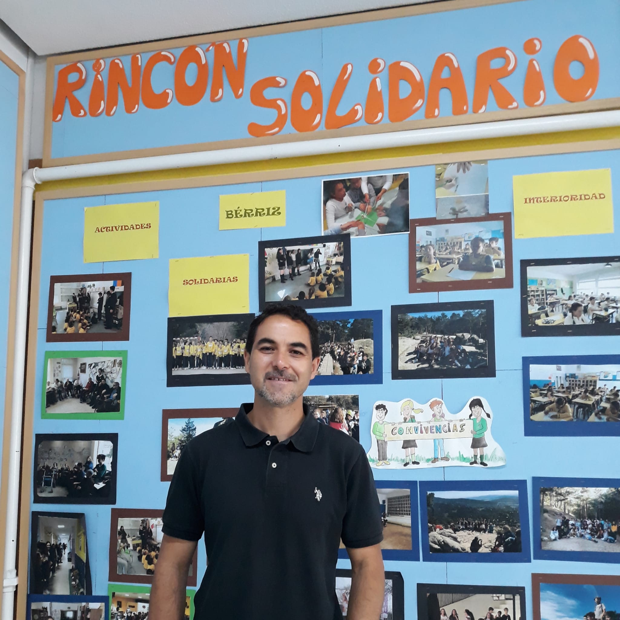 Fue casualidad o providencia, cada uno que lo determine según su profesión. Para mi fue providencia. Pues el llegar al colegio Bérriz, fue un momento en el que, a pesar de muchas circunstancias adversas, Dios marcó un camino a seguir y yo me dejé llevar por esa correspondencia. En el colegio estaban buscando una persona que fuese profesor de religión, pero fundamentalmente que dinamizase la pastoral del colegio, potenciase los proyectos de aprendizaje-servicio (por aquel entonces se hablaba más de voluntariado) y diera más relevancia al carisma de las Misioneras Mercedarias de Bérriz. Cuando fui a la entrevista nunca había oído hablar del colegio, ni de las Misioneras Mercedarias de Bérriz. Comencé con la idea de estar un tiempo escaso porque solo podían ofrecerme 8 horas y además yo no me sentí en principio llamado a esta labor de profesor. Pero el gusto por la docencia y el poder crear nuevos proyectos en el colegio que antes no existían y que me motivaron cada vez más, como el proyecto de interioridad, los microproyectos para cambiar el mundo, el aprendizaje-servicio,…