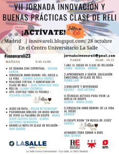 En el año 2016 se inició un nuevo evento para el profesorado de Religión, una Jornada de Innovación y Buenas Prácticas que tenía como objetivo compartir experiencias y proyectos en la clase de Religión y además crear redes entre profesorado de Religión de diferentes colegios y diócesis. La jornada fue todo un éxito, con una alta participación y valoración por parte del profesorado. De ahí que durante varios cursos se continuó con la iniciativa, añadiendo nuevos talleres prácticos de tarde e incluso realizando una jornada online durante la pandemia. Este año el equipo coordinador de innovareli propone a todo el profesorado de Religión de las diferentes diócesis, colegios y etapas educativas una nueva jornada, que es ya la séptima, el próximo sábado 28 de octubre en el edificio de La Salle Centro Universitario (La Salle 10, Madrid). Unas jornadas que vendrán con interesantes propuestas para aplicar en las clases de Religión, propuestas dinámicas y diversas y también incluimos como novedad una propuesta de un juego creado por una profesora de Religión que está siendo todo un éxito: “Ierusalem. Anno Domini”. Como todos los años las jornadas son gratuitas y el horario será de 9:45 a 19:15, con posibilidad de comer en la misma universidad. En la página web se podrá consultar el programa con las buenas prácticas y talleres a realizar.