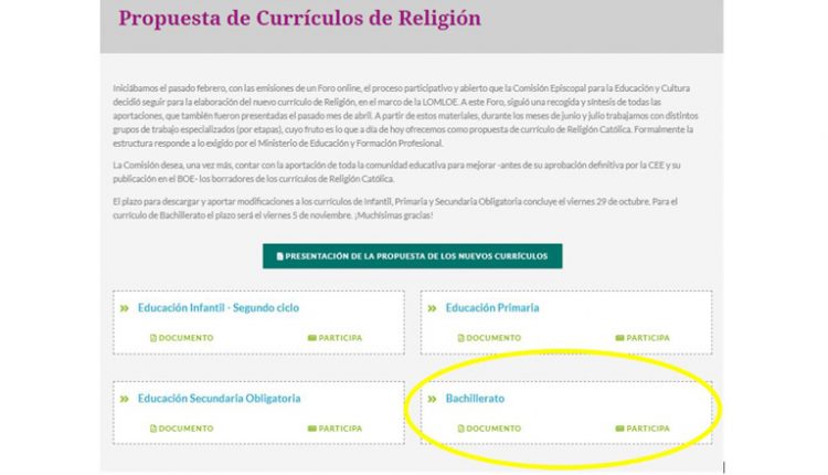 La Comisión Episcopal para la educación y cultura ha subido a la web https://hacianuevocurriculo.educacionyculturacee.es/ la propuesta de currículo para Bachillerato. Disponemos hasta el día 5 de Noviembre para trasladar nuestras aportaciones.