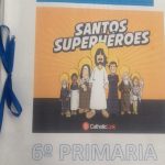 Desde el área de Religión, se realizan dos tareas que incluyen algunas actividades. Aprovechando el proyecto mencionado, trabaja el día de todos los Santos desde el punto de Superhéroes. De ahí el mural realizado con el segundo ciclo de Primaria, donde se trabajan los santos que aparecen reflejado en el mural.