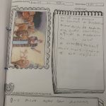 Las imágenes también las eligen ellos y se las imprime la docente. Una vez pegadas en la plantilla, las plastifica y encuaderna, con un lazo de color azul.