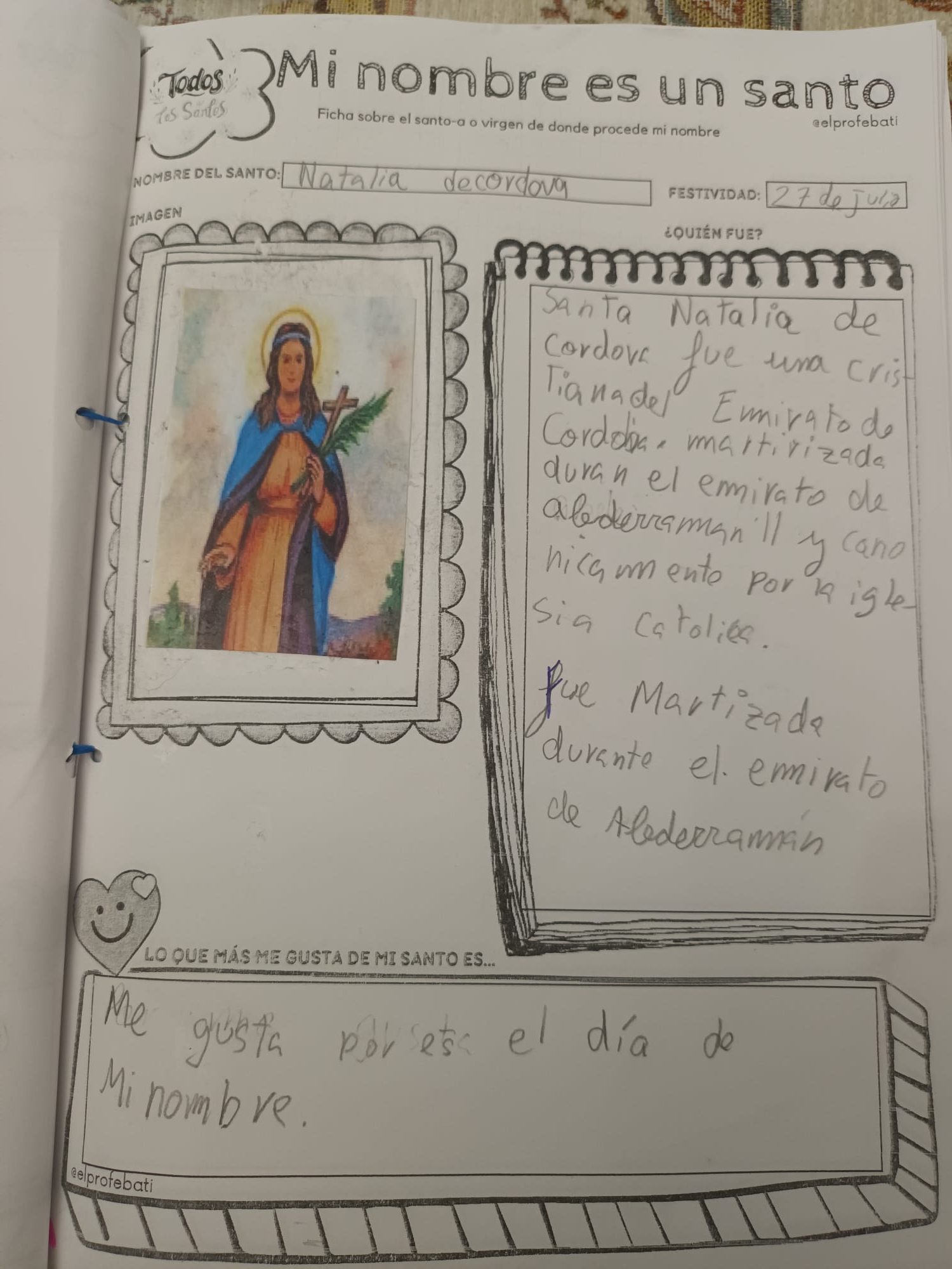 En el tercer ciclo, el alumnado elabora un santoral de aula basado también en nuestros héroes (los Santos).