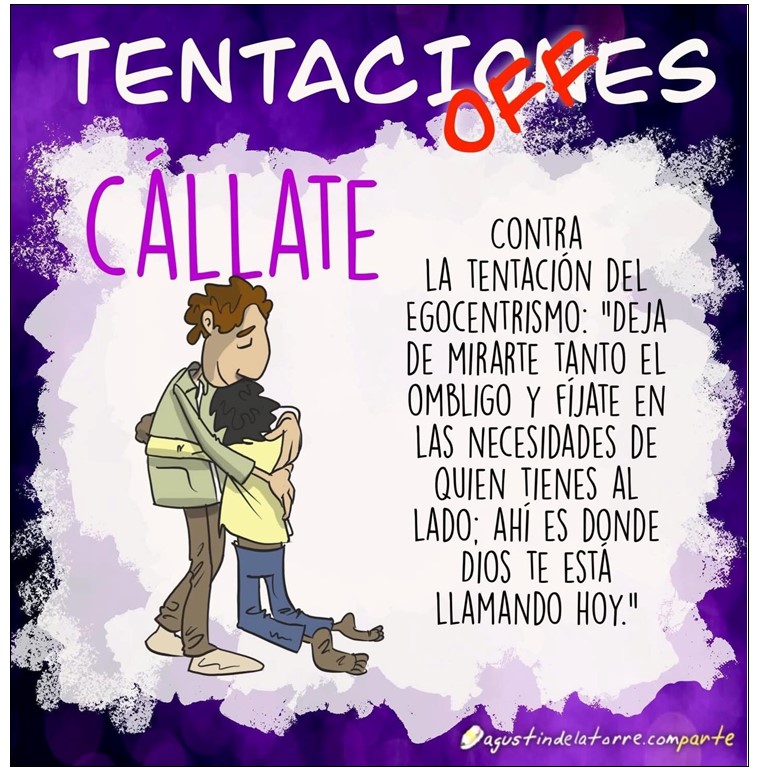 Con estas imágenes podemos concretar otras tentaciones y especificar qué actitudes tomar y cómo actuar para superarlas. Y antes de nada, a partir de la primera imagen, podemos descubrir nuestro engaños e incoherencias o desde dónde pedimos.