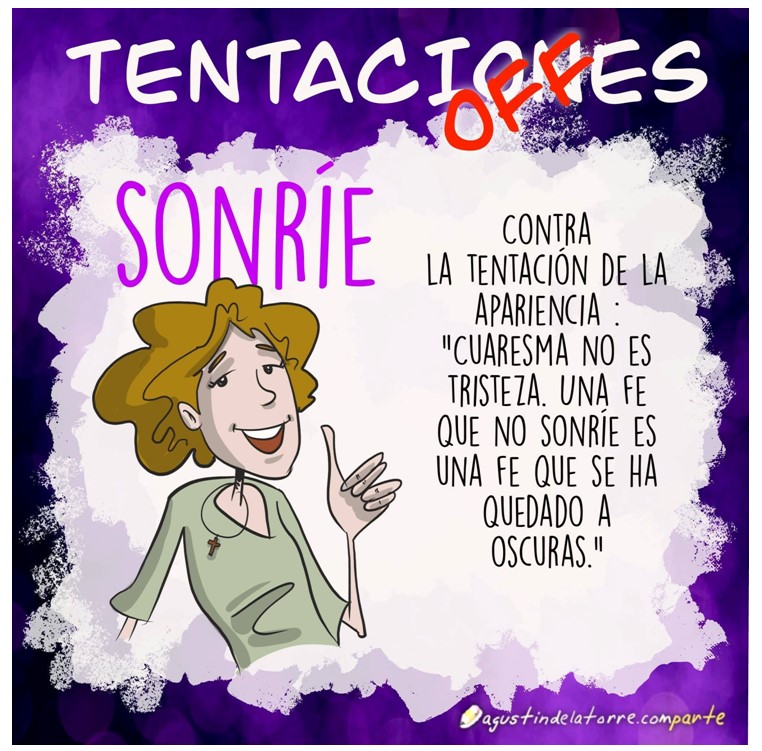 «Para mucha gente hablar de la tentación es algo así como atractivo, prohibido pero seductor, algo que en realidad de vez en cuando hay que probar.Así como “date el gusto, no te prives, venga, que nadie te diga que no puedes”. Esa es la idea con la que juegan, por ejemplo, algunas de las publicidades. Y si alguien te advierte contra alguna tentación, pues, hombre, es un cortarrollos, un agonías o un reprimido, ¿no?