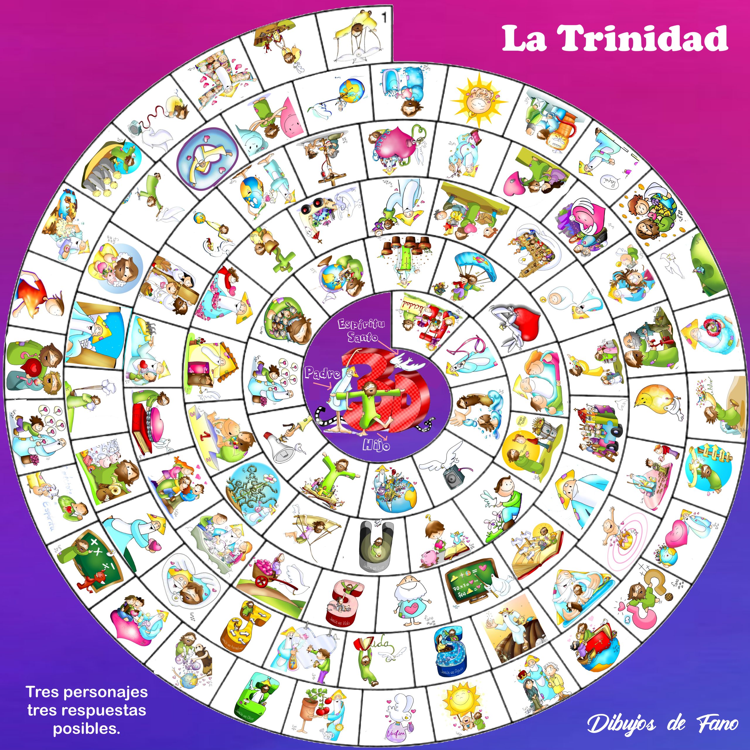 En todos los casos, nuestras explicaciones, parar y fijarse en algún dato concreto o detenerse en un dibujo del tablero, hará que el juego tenga un mayor aporte al conocimiento de la Trinidad y a participar ellos en los comentarios.