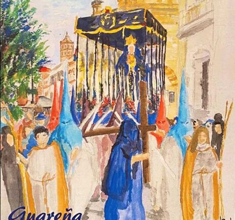 El cartel de Competa (Málaga) es obra de Gerardo García Ávila. Él no explica su obra sino que desea que cada uno exprese lo que le transmite. Eso podemos hacer. El artista, mezclando colores un día, viendo el dolor de la gente y la soledad de la Cruz, se dio cuenta de que la esperanza es lo último que se pierde y que la muerte no es el final. Ahí está la cruz, con la corona de espinas y dos grandes clavos… Y plasmó a las personas en cada una de esas líneas… ¿Qué nos transmite el cuadro?