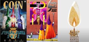 El tercer cartel, de Oliva (Valencia), fue el ganador del concurso creado al efecto y es obra de Carla Herranz Calero, arquitecta y profesora de Secundaria en la especialidad del Dibujo, que compagina esta faceta docente con el diseño gráfico. Todo el pueblo –representado especialmente en las torres de las parroquias y alimentado por tres arboles, como el Padre, Hijo y Espíritu– se transforma en vela encendida que da luz en cinco llamas, como las cinco llagas de Jesús en la cruz… ¡Un pueblo luminoso a la luz de la resurrección!