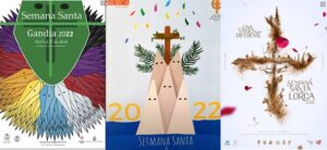 Traemos aquí algunos carteles más, todos ellos luminosos. En estos tres –de Gandía y Sueca (Valencia) y de Lorca (Murcia)– también la Cruz está como centro pero muy relacionada con los cofrades. Ellos son quienes mantienen las tradiciones de la Semana Santa, quienes las viven de una forma muy intensa y quienes nos ayudan a vivirlas a los demás de una forma especial. Investigamos sobre el origen y el significado de estos tres carteles y manifestamos lo que a nosotros nos produce cada uno de ellos.