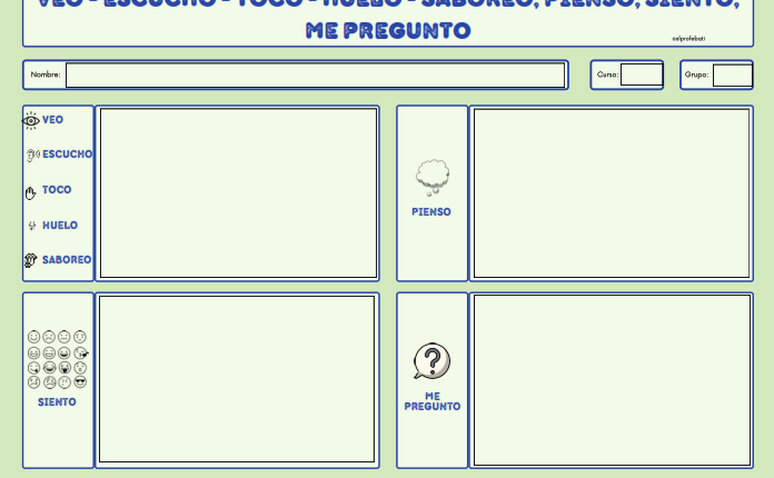 En otro artículo ya hablamos de la rutina de pensamiento: veo, pienso, me pregunto de la que, en esta ocasión, aporto la ficha descriptiva y plantilla para rellenar de una versión realizada por María del Mar Romera: veo, escucho, toco, huelo, saboreo – pienso – siento – me pregunto.